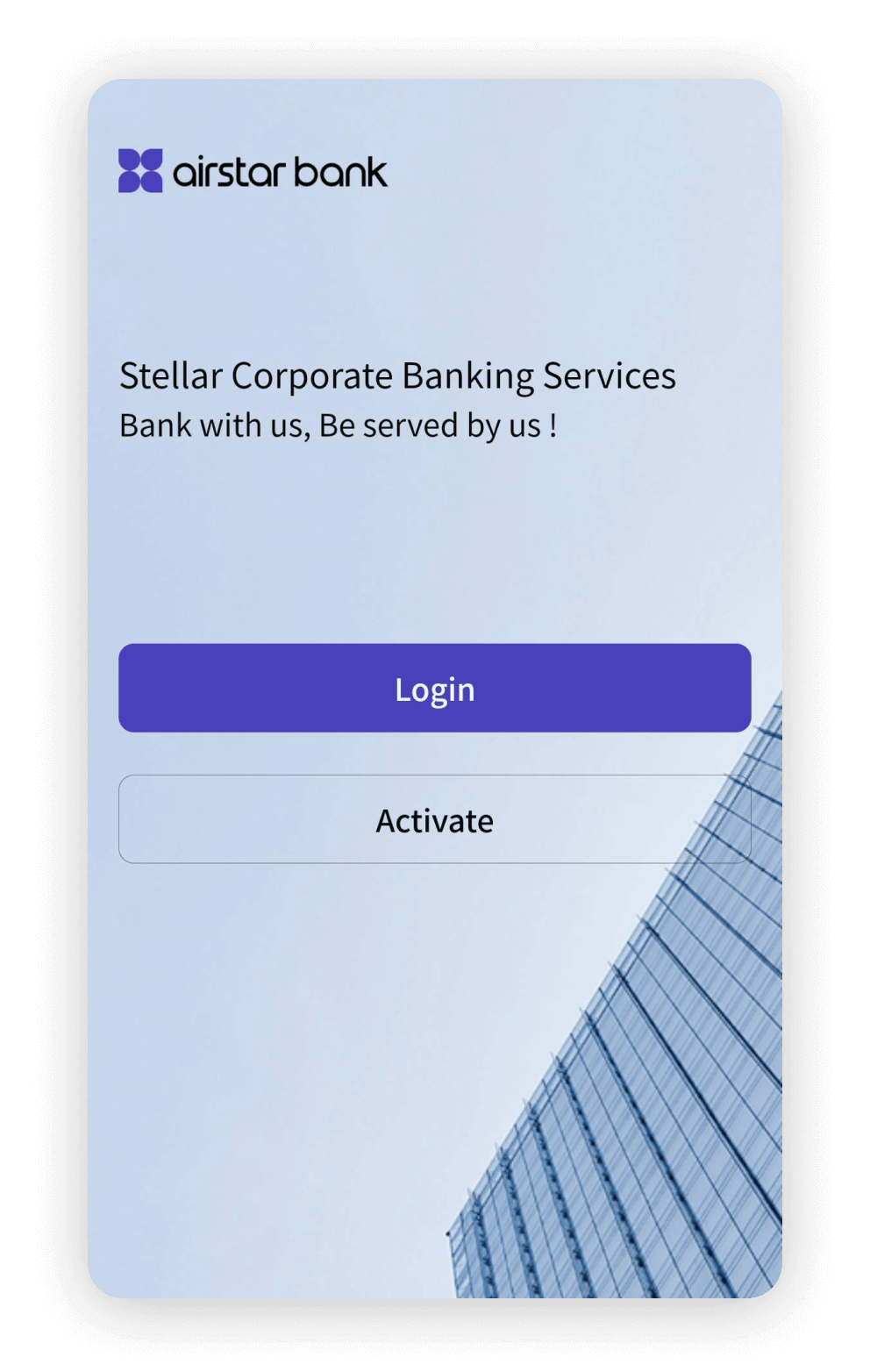 Open the Airstar Bank Corporate soft token and enter the Group ID, User's Name, login password and verification code to login
