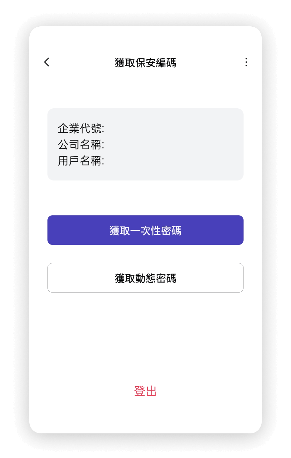 获取六位数一次性密码,用于企业网银登录。密码一次性有效