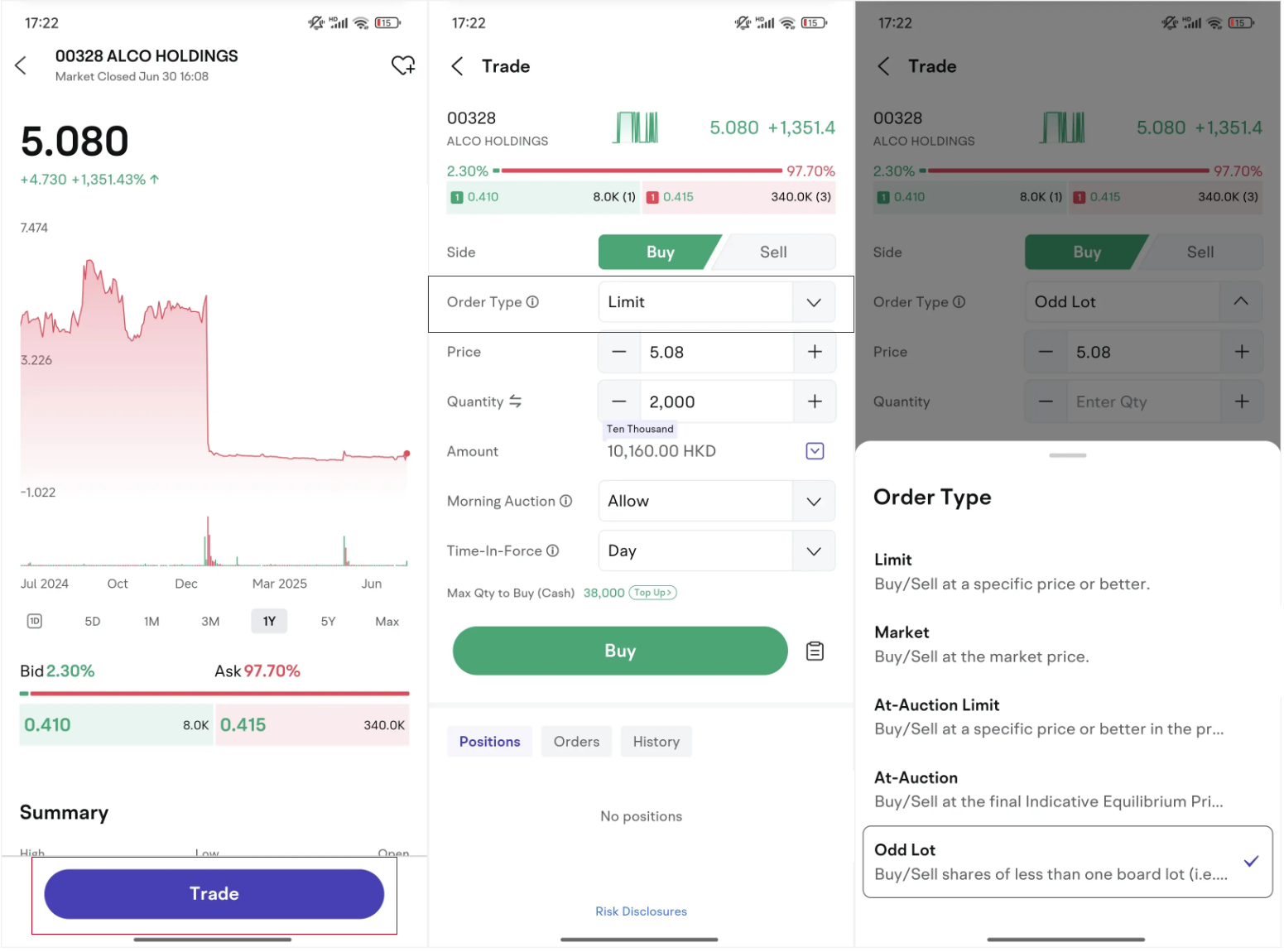 Note: If the order type has no odd lot orders, please update the client to the latest version.
