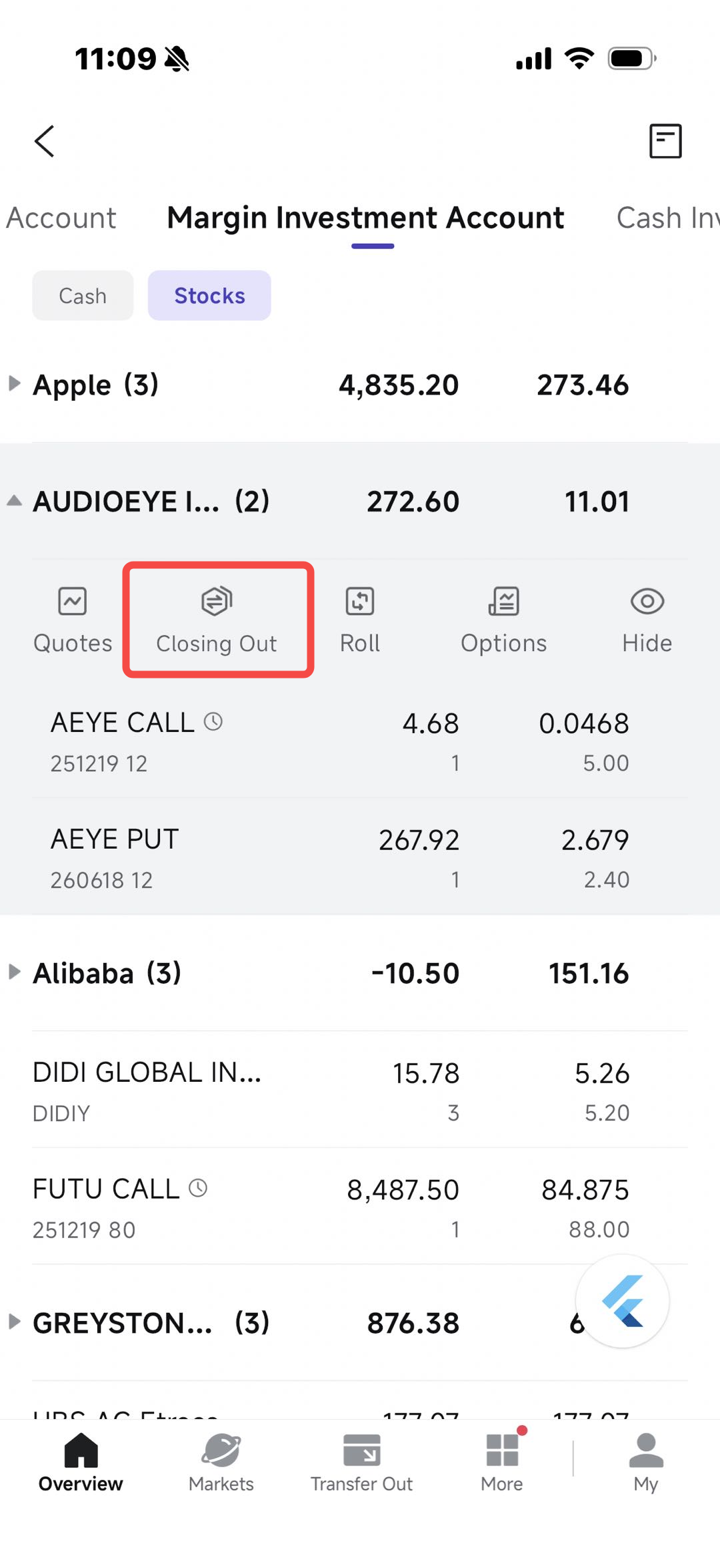 Tap the icon indicated in the illustration below, and you can close out multiple positions as you want with a multi-leg options order (applicable whether in the Option Strategy View or not).