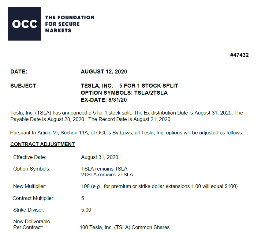● New Deliverable Per Contract: 100 shares of TSLA after stock split