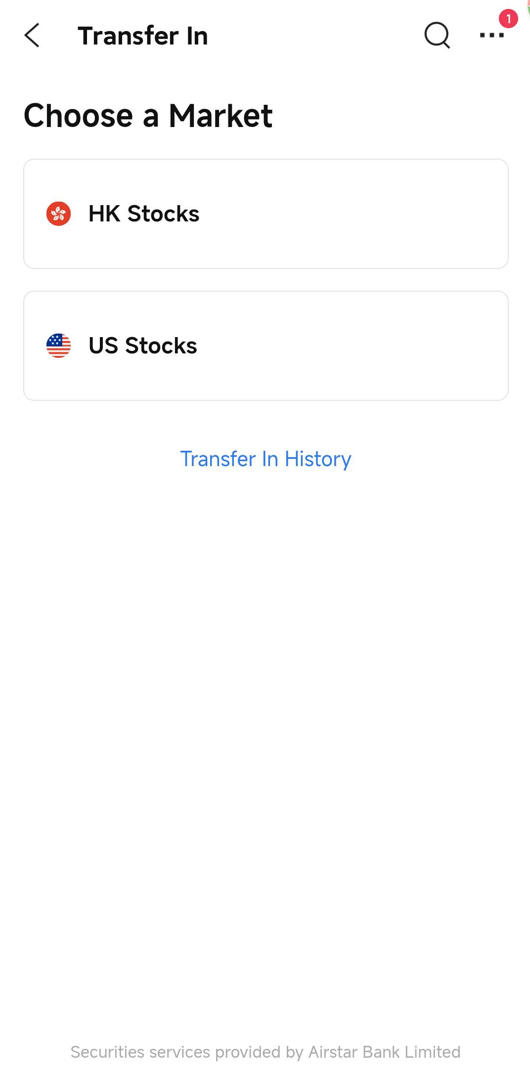Select the corresponding market for the stocks you want to transfer in. If you want to transfer stocks from different markets, please submit separate transfer requests for each market.