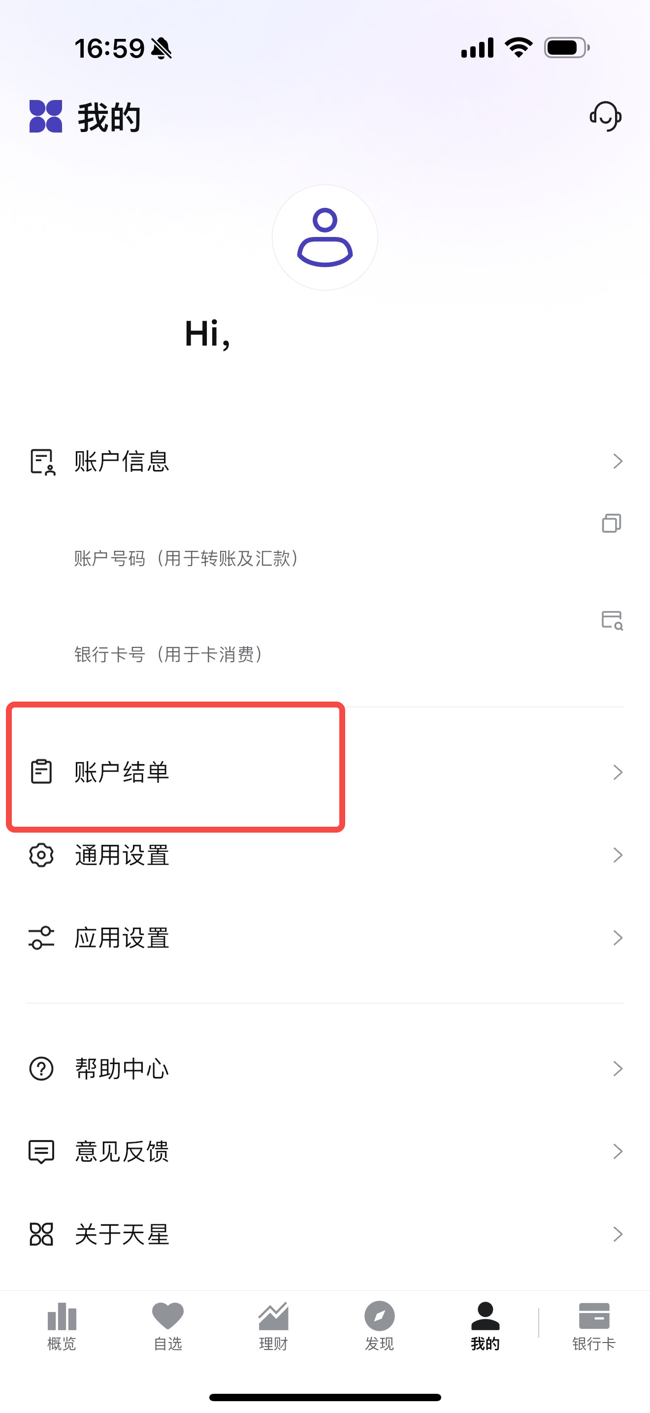 您可以通过天星银行APP查看结单,可按下图所示进行操作。