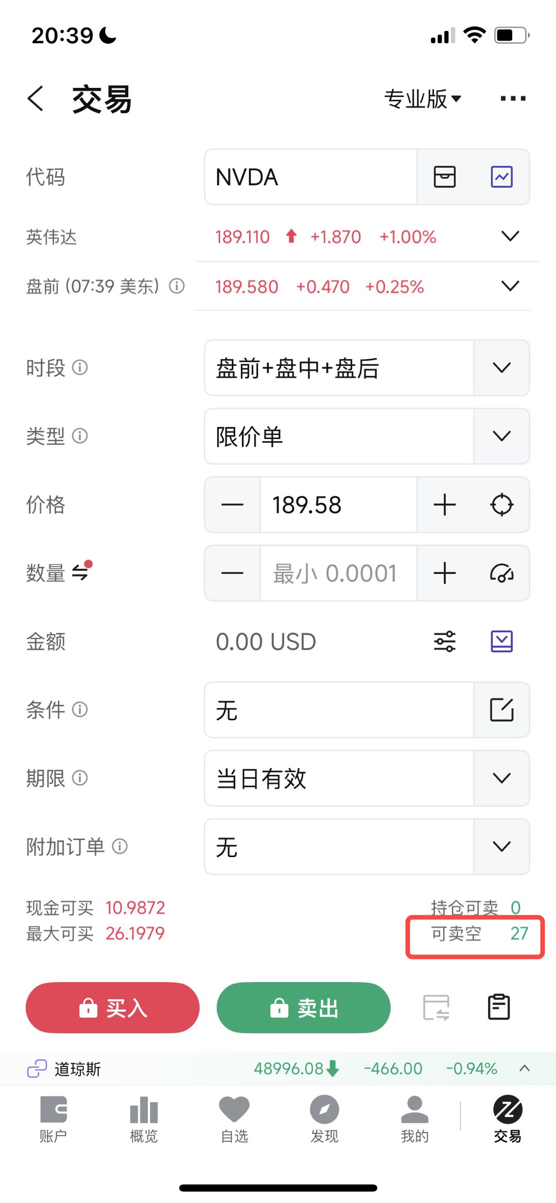 融券交易最多可以借入多少股票,同样也取决于股票的初始保证金率和您账户的资产情况。当您账户内的自有现金不足时,天星将自动根据您的账户资产情况(包括但不限于现金、持仓、冻结资金等),向您提供融资,以维持足够的抵押金额。最多可卖出多少股票可在交易下单时看到,如下图所示: