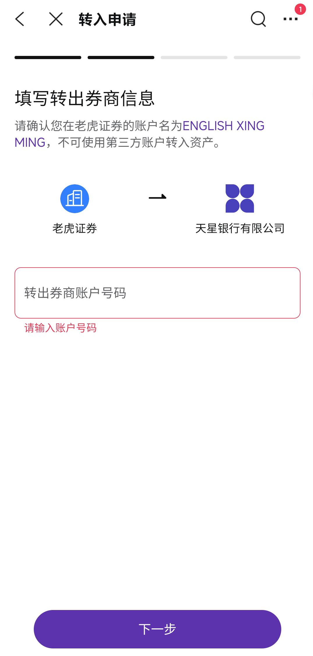 转出方信息:指在原有券商的相关信息。如:从A券商转出股票到天星银行,此处即选择「A券商」(如列表中未有对应券商,请选择其他券商)。