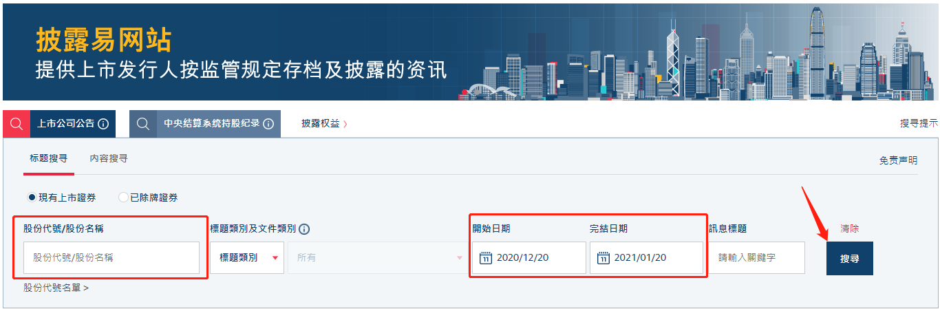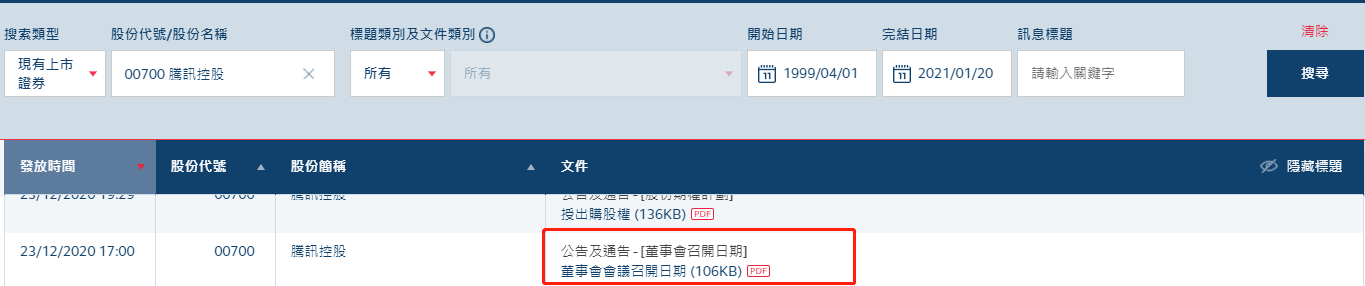 iii. 點擊搜尋後出來搜索結果,即可查看公告內容