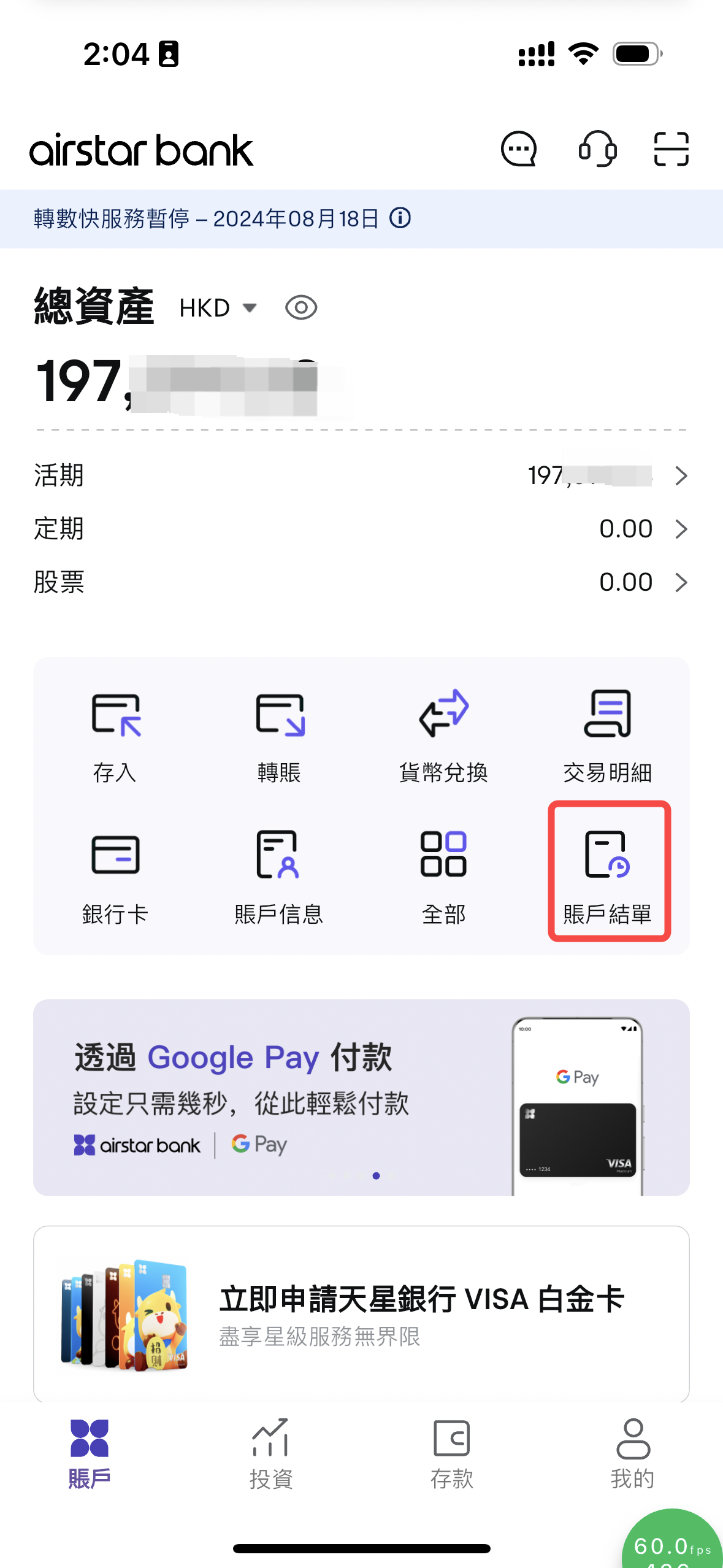 2.1 天星銀行APP查看結單