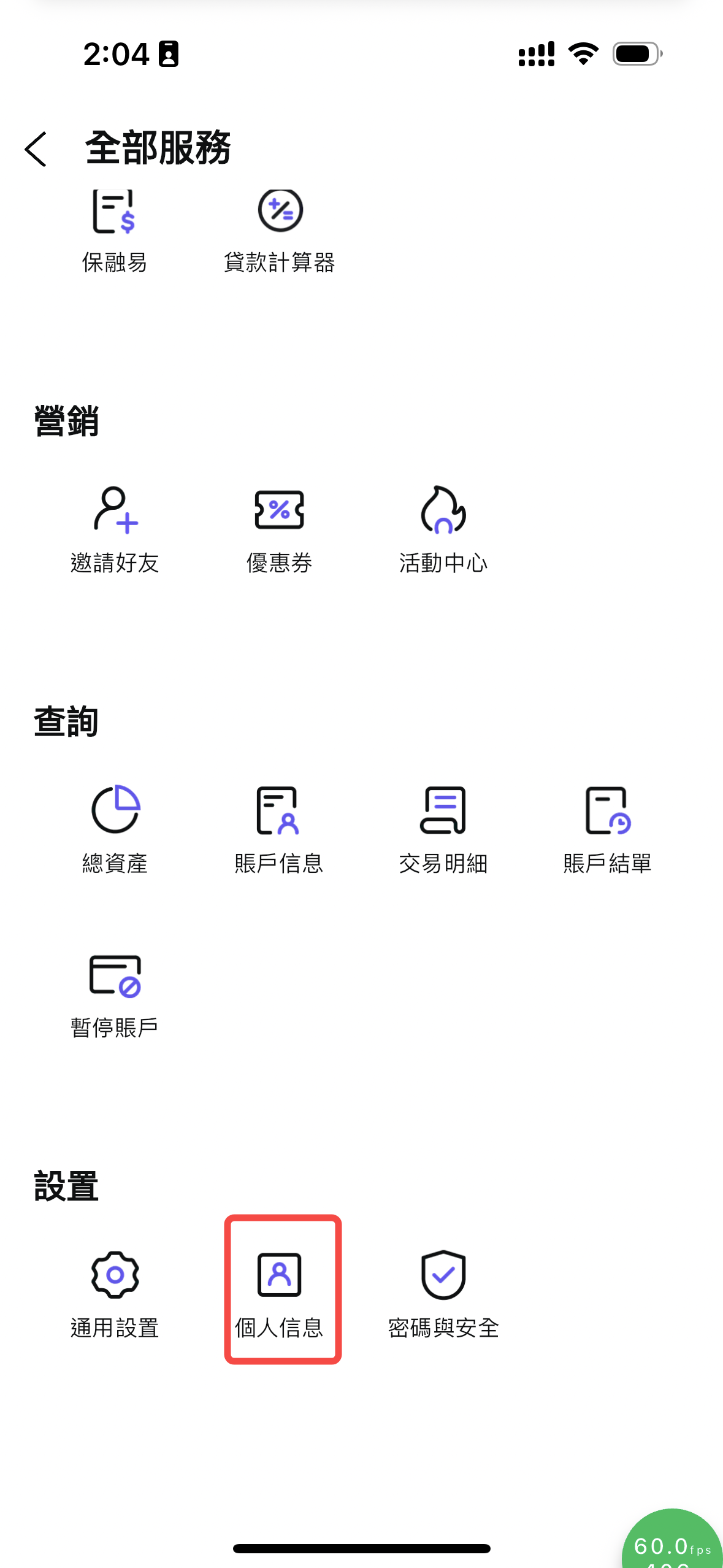 操作路徑:「APP > 帳戶 > 全部 > 查詢 > 帳戶結單 > 投資結單」