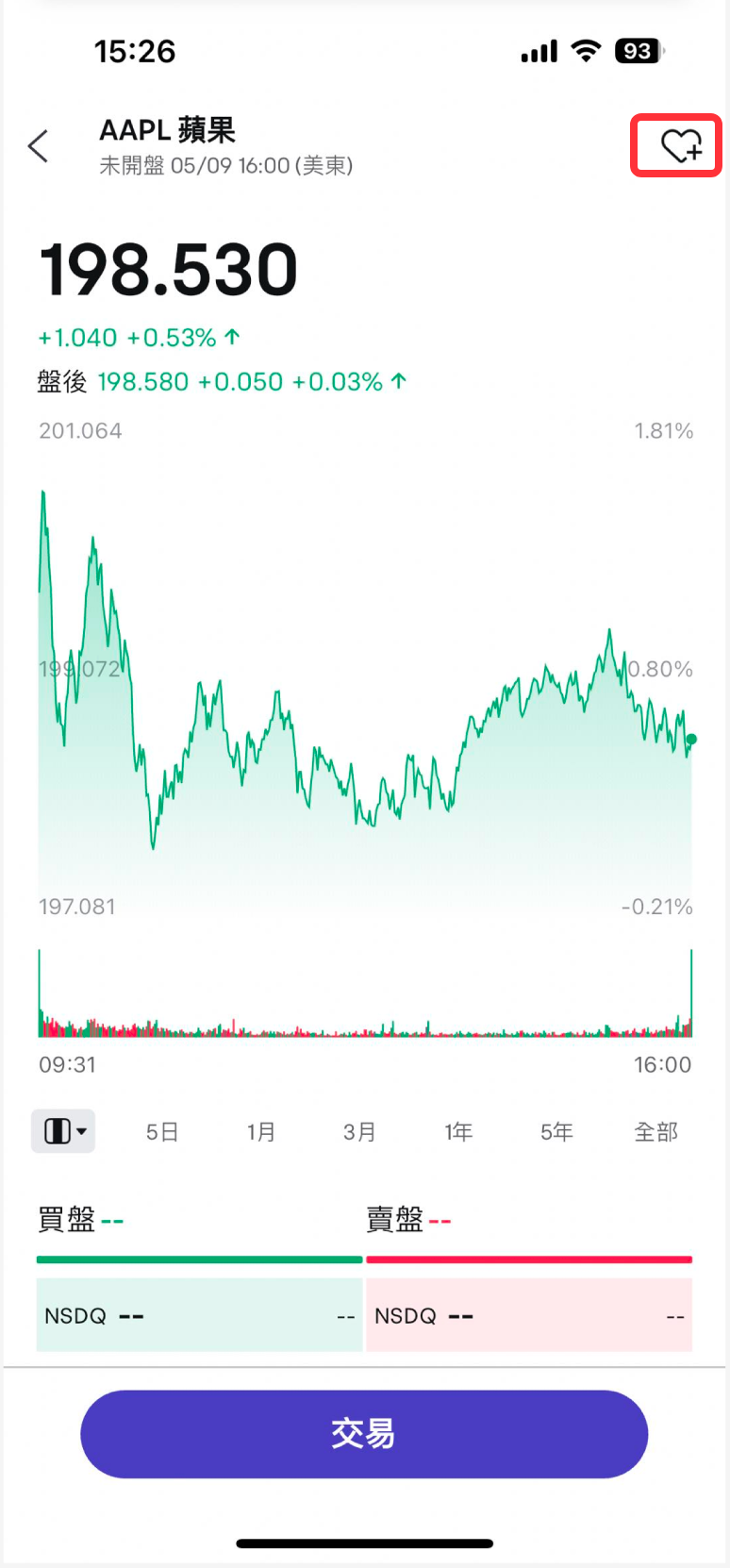 在個股報價詳情頁點擊添加自選。